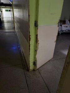 O Hospital Municipal de Foz do Iguaçu enfrenta questionamentos quanto às condições de sua estrutura física. Fotografias feitas no interior da unidade, especialmente em áreas de atendimento e circulação de pacientes, evidenciam problemas que vão desde portas danificadas até a presença de resíduos espalhados pelos corredores. As imagens mostram portas com dificuldades de fechamento, desgastes visíveis e improvisações, além de lixo acumulado em locais de passagem, cenário incompatível com um ambiente hospitalar que deveria prezar pela segurança, higiene e acolhimento dos pacientes.